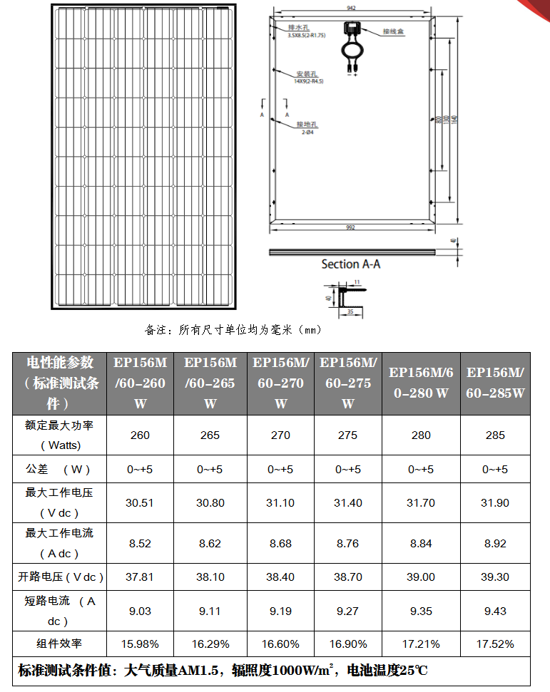 156單晶60片組件(260W-285W)工程圖紙(4BB)